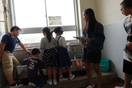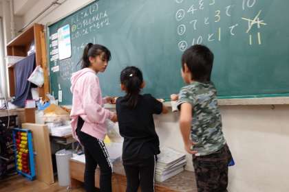 いきいき清掃交流(高学年と低学年の清掃時間交流)の様子です。