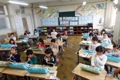 2年2組が鍵盤ハーモニカの練習をしていました。