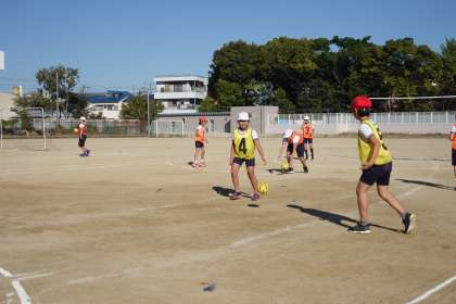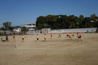 グラウンドはとても気持ちがいいです。4年1組が体育の授業を行っていました。
