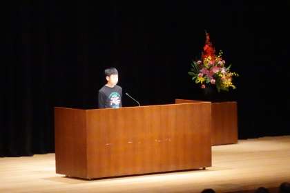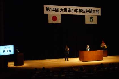 本日サーティホールにおいて、大東市小中学生弁論大会が開催されました。本校6年生の峯 大輝(みね だいき)さんと5年生の安田 陽菜乃(やすだ ひなのさん)がそれぞれ発表しました。