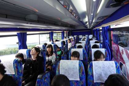 平和記念公園をあとにし、バスで宿舎のある蒲刈島へ向かいます。宿舎直前になると、お迎えの車が来ました。ありがとうございます。