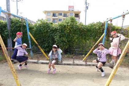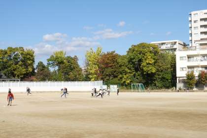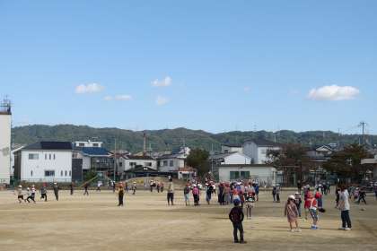 多くの人がグラウンドに出て遊んでいます。