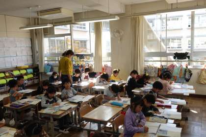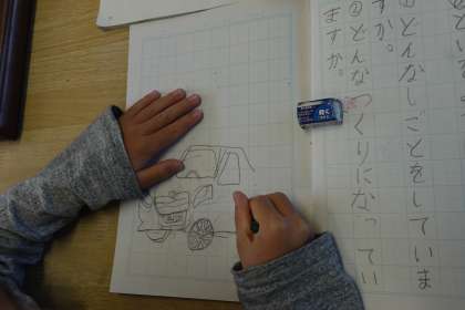 色々な授業を参観させてもらいました。1年生の国語です。