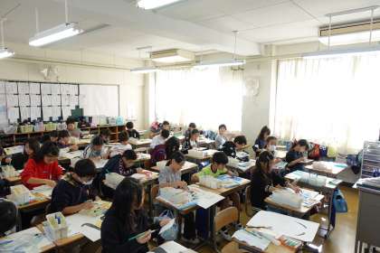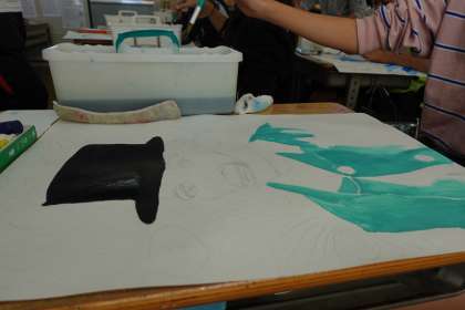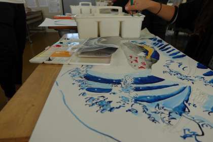 6年1組の図工です。3組と同じように、模写を基本としたオリジナルな作品を制作中です。