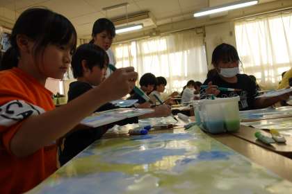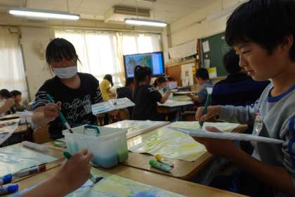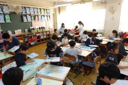4年2組は図工でした。とてもきれいな作品がたくさんです。