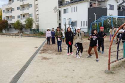 昔遊びです。「だるまさんがころんだ」です。