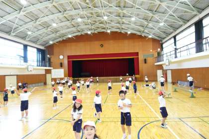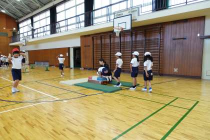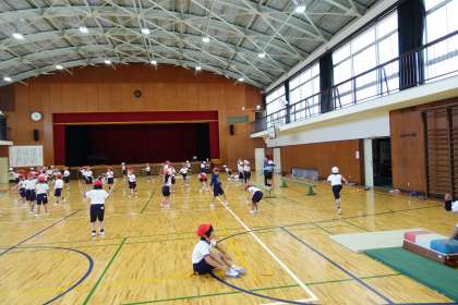 1年生は体育館で合同体育です。