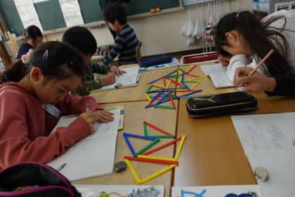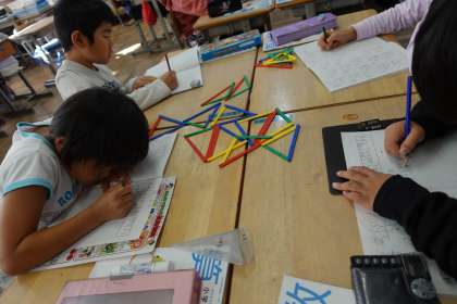 算数の授業中です。三角形について学んでいます。