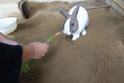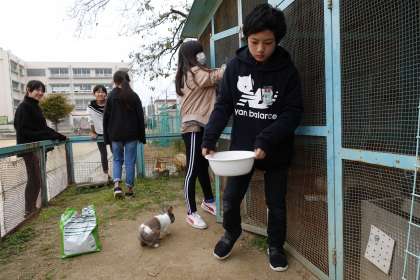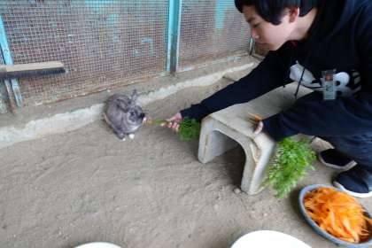 警戒心の強い「ふわり」(写真3枚目)が、初めて人の手からエサを食べたそうです。飼育委員がとても喜んでいました。