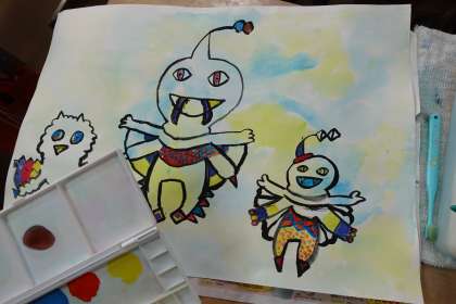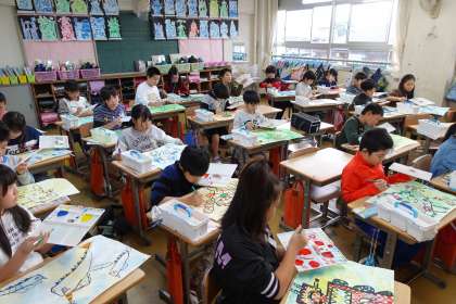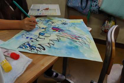 図工の授業中でした。ユニークな作品がたくさんありました。