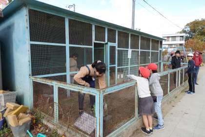 風が冷たい中ですが、ウサギの世話をしてくれています。ごくろうさまです。