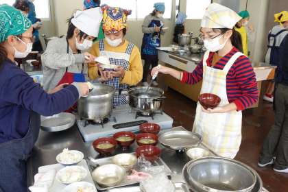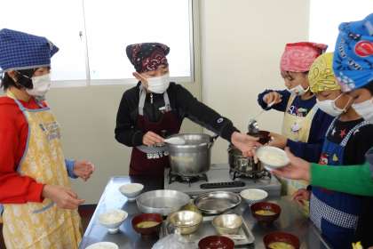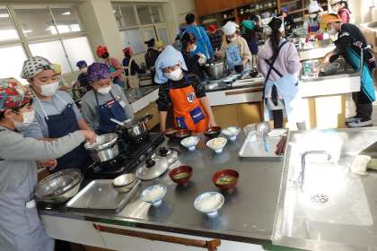 5年1組が調理実習を行っていました。調理室に行った頃にはもうほとんど出来上がっていました。
