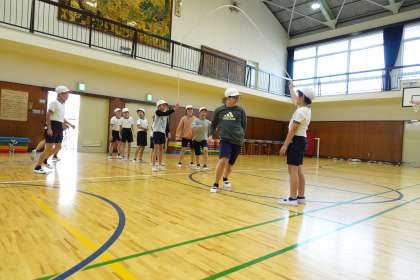 体育館がすごく盛り上がっていたので見に行きました。5年3組が連続長縄跳びの練習に励んでいました。昼休みにグラウンドで練習していた理由がわかりました。