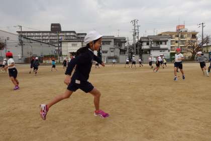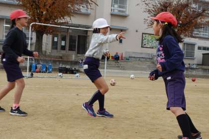 ウオーミングアップとして鬼ごっこをしています。サッカーでは「周りを見る」技術がとても大切ですが、この鬼ごっこもしっかり周りを見ないといけませんね。