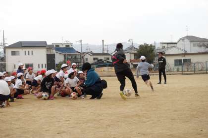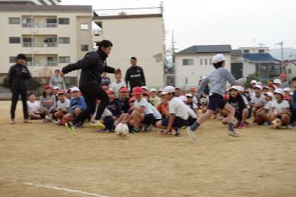 いよいよコーチとのドリブル対決!全力で逃げる人にコーチがついていけるか勝負です。