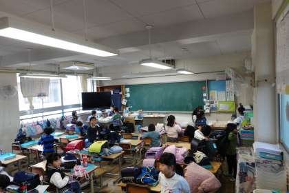 今朝の登校風景です。2枚目の写真は、朝の準備をする1年1組です。1年2組は、撮影に失敗してしまいました。