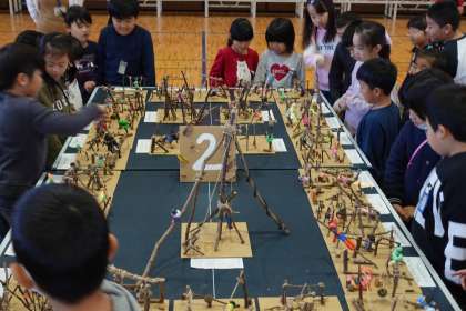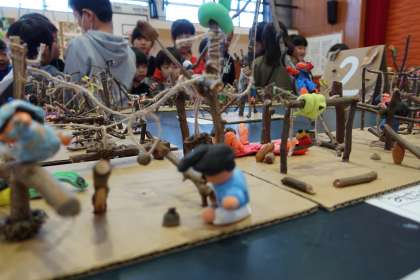 今回の作品は、それぞれ深北緑地で探してきた材料を使いました。