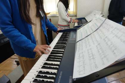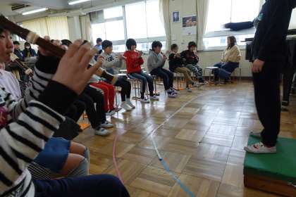 5年1組が合奏の練習をしていました。