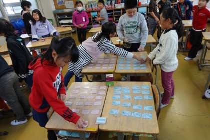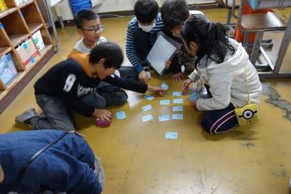 4年生は教室で百人一首をしていました。新年百人一首大会に向け、各クラス頑張っています。