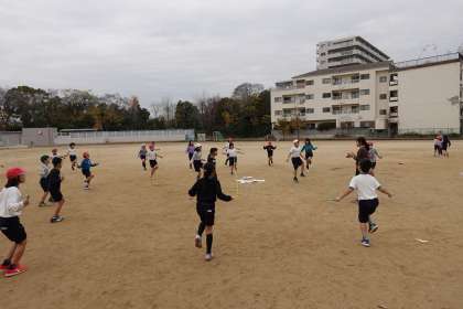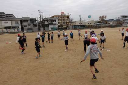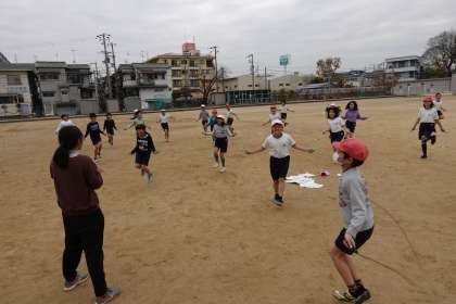 体育の授業です。縄跳びのテストを行っていました。テストに合格して喜んでいました。