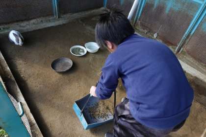 小屋の掃除をしたり水を変えたりと、一生懸命ウサギたちの世話をしてくれています。