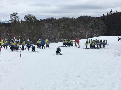 スキー学習のスタートです。みんな緊張しています。