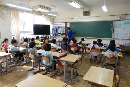 3年2組も算数です。クラスを分割して授業しています。