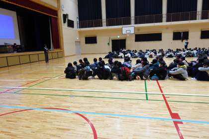 6年2組が学級閉鎖のため、残念ながら1組と3組だけでの参加となりましたが、本日南郷中学校の体験授業に参加しました。