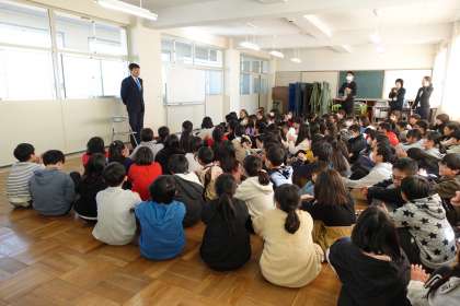 市長ご自身の経験から、「友だちの大切さ」や「頑張ることの素晴らしさ」を子どもたちにわかりやすくお話しいただきました。また、子どもたちの質問にも丁寧にお答えいただき、楽しく有意義な時間でした。
