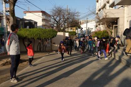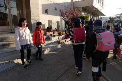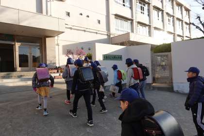今朝の登校風景です。冷え込んでいます。
