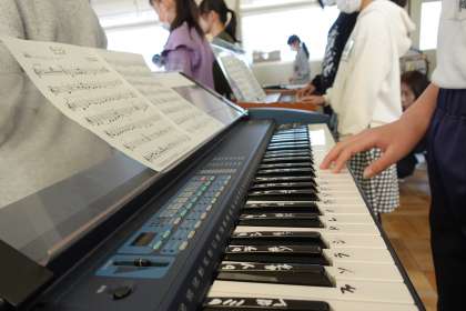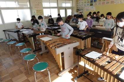 5年生が、卒業式の退場曲を一生懸命練習していました。