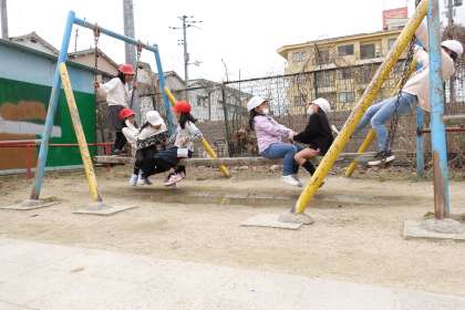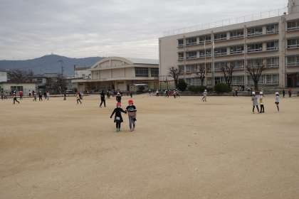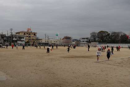 今日もたくさんの人がグラウンドで遊んでいます。