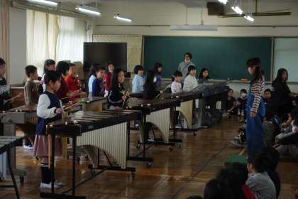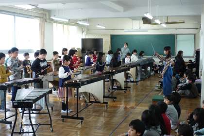 午後の授業です。3年生が合同で音楽の授業を行っていました。他クラスの演奏を聴いて、感じたことを交流し合います。