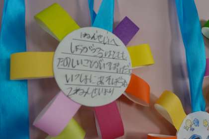 1年生の教室で見つけました。2年生が作ってくれました。6月にもらえるそうです。