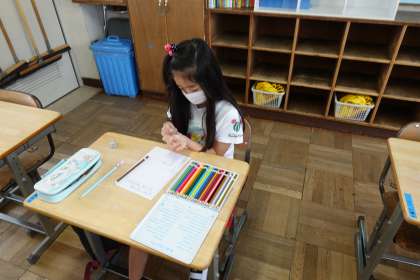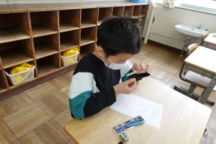 3年生の続きです。ホウセンカの種を観察していました。この臨時登校日に種をまいたそうです。
