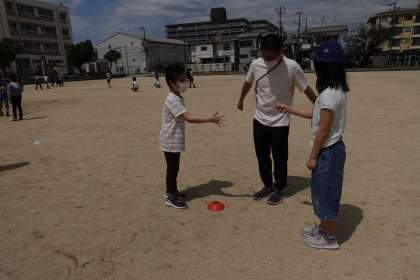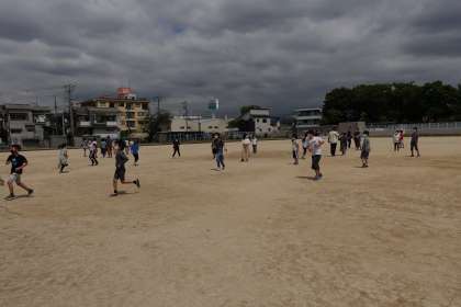 5年生の様子です。昨日と同じように、運動場で学年レクを楽しんでいます。