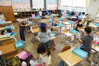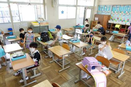 授業の準備をする1年生です。自分でできることが増えてきています。