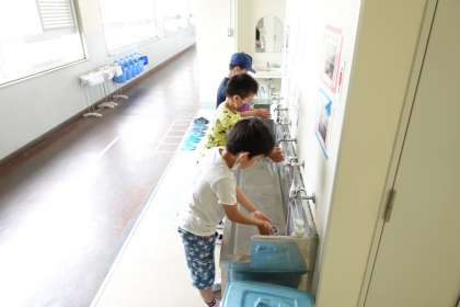 午後のグループが登校してきました。少し蒸し暑くなってきました。