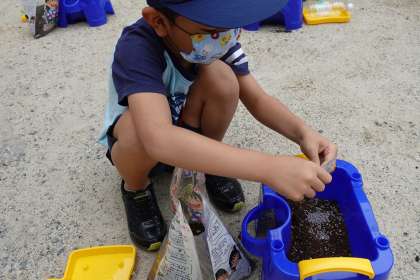 1時間目の様子です。生活科でアサガオの種をうえました。Aグループの人は、明日うえるそうです。