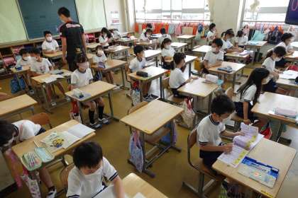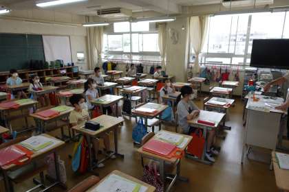 4年生の様子です。1組と2組です。1組の澤田先生が、2組の様子も見に来てくださいました。