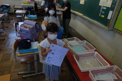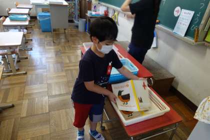 今朝の登校風景と、朝の準備をする1年生を撮影しました。