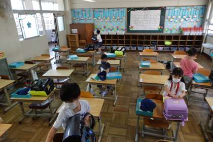 写真は朝の準備をする1年生です。