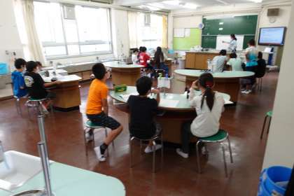 6年生の様子です。2組は理科室で授業です。