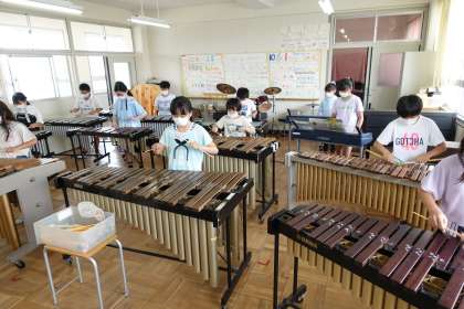 音楽の授業です。楽器体験と簡単な合奏曲にチャレンジしました。