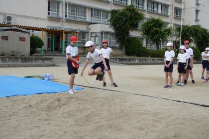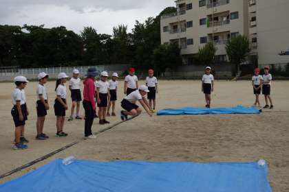 1組の体育です。途中で雨が降って中断になりました。
