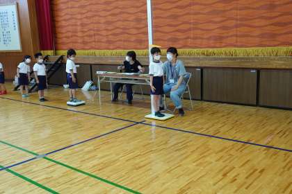 1組は体育館で2測定、2組は算数の授業です。