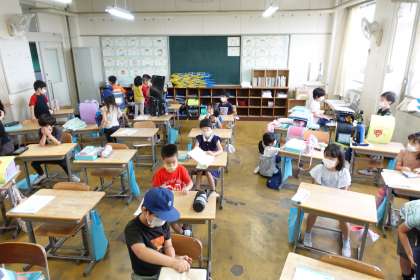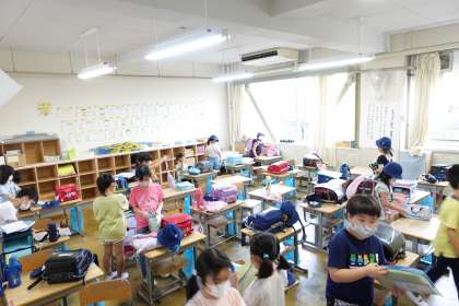 写真は朝の準備をする2年生です。