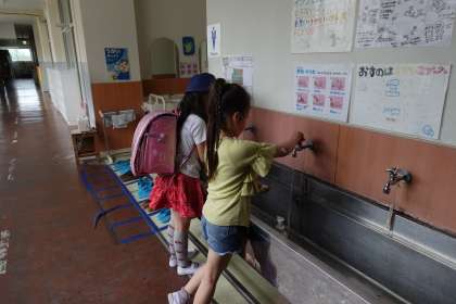 朝の準備をする2年生です
