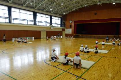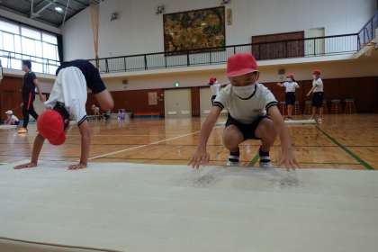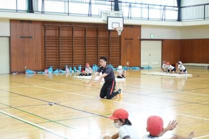 4年1組と2組が合同体育を行っていました。今日は、1組担任の澤田先生が指導してくれました。