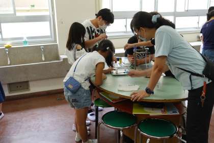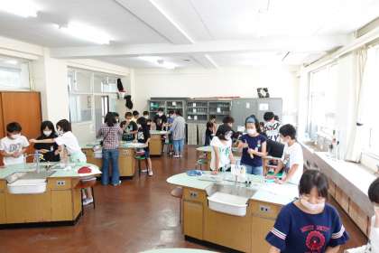 理科室を参観しました。「物の燃え方」を学習しています。今日は気体検知管を使って、ろうそくが燃えた後の二酸化炭素量を計測しています。